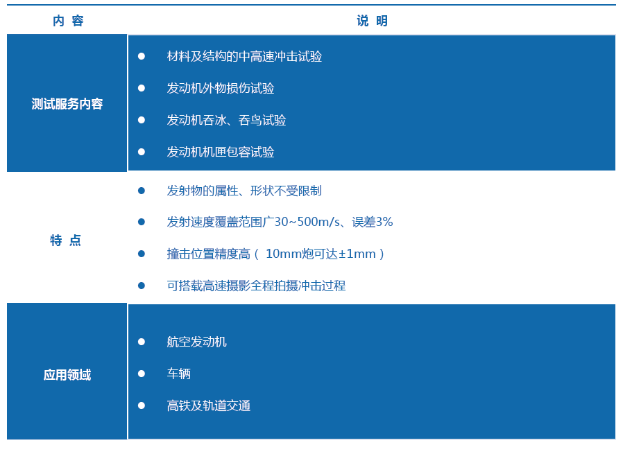 產品描述:材料與結構中高速沖擊測試服務主要針對航空航天、車輛及軌道交通等行業,可用于模擬不同材料或結構受外物高速沖擊后的損傷情況,如:發動機機匣包容試驗、外物損傷試驗,吞冰吞鳥試驗、車輛高速沖擊試驗等,該試驗系統可將50g~6000g的發射物加速至50m/s~320m/s沖擊試驗件,發射物覆蓋范圍廣,發射速度可調,沖擊精度高。